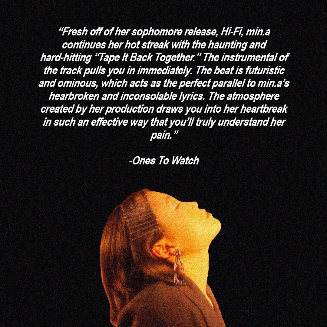 When I first met min.a over the phone, it was instantly clear to me that she’s a real artist with a lot to say. In her latest EP hi-fi, min.a combines unorthodox sounds with an easy-to-listen-to voice to create a velvety soundscape with irresistible melodies. She is unapologetically bold, refreshing, and her music carries a unique sound unlike anything I’ve been hearing in the realm of soft pop/rock. Throughout the four tracks, you can’t help but be taken aback by how seamlessly her songs melt together. needless to say, I’ll be impatiently anticipating her next release.